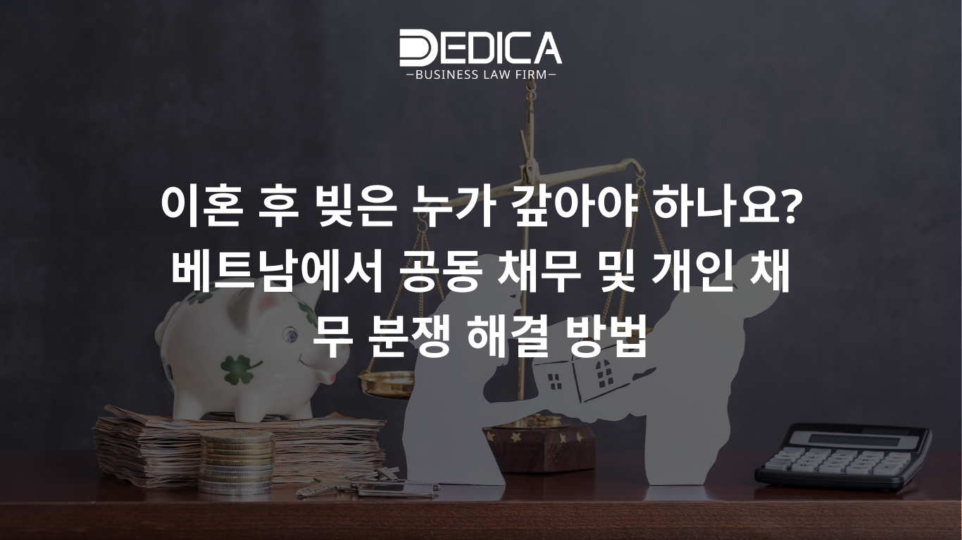 이혼 후 재산 분할과 자녀 양육 문제 외에도 많은 부부들이 끝내 정리하지 못하는 문제 중 하나가 공동 채무와 개인 채무입니다. 누가 빚을 갚아야 하나요? 어떤 빚이 개인적인 것이고, 어떤 빚이 공동 책임인가요? 한쪽이 개인적 소비를 위해 돈을 빌렸다면, 다른 한쪽도 책임이 있을까요? 본 글에서는 Dedica 법률사무소가 베트남의 최신 법률 규정과 실무적인 해결 방안을 공유합니다.