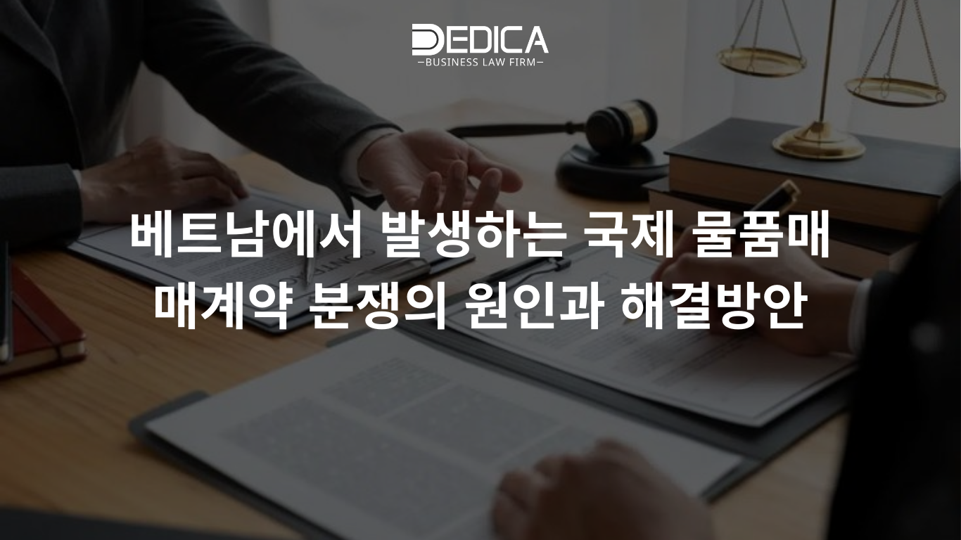 DEDICA 법률사무소는 특히 국제 물품매매계약 분야에서 베트남 기업과 늘 함께합니다. 계약 작성, 법적 리스크 분석, 분쟁 조항 설정, 소송 및 중재 대응까지 효과적인 법률 서비스를 제공합니다. 복잡한 계약이나 분쟁에 직면해 있다면, 지금 바로 연락 주시면 신속하고 전략적인 자문을 제공해 드리겠습니다.