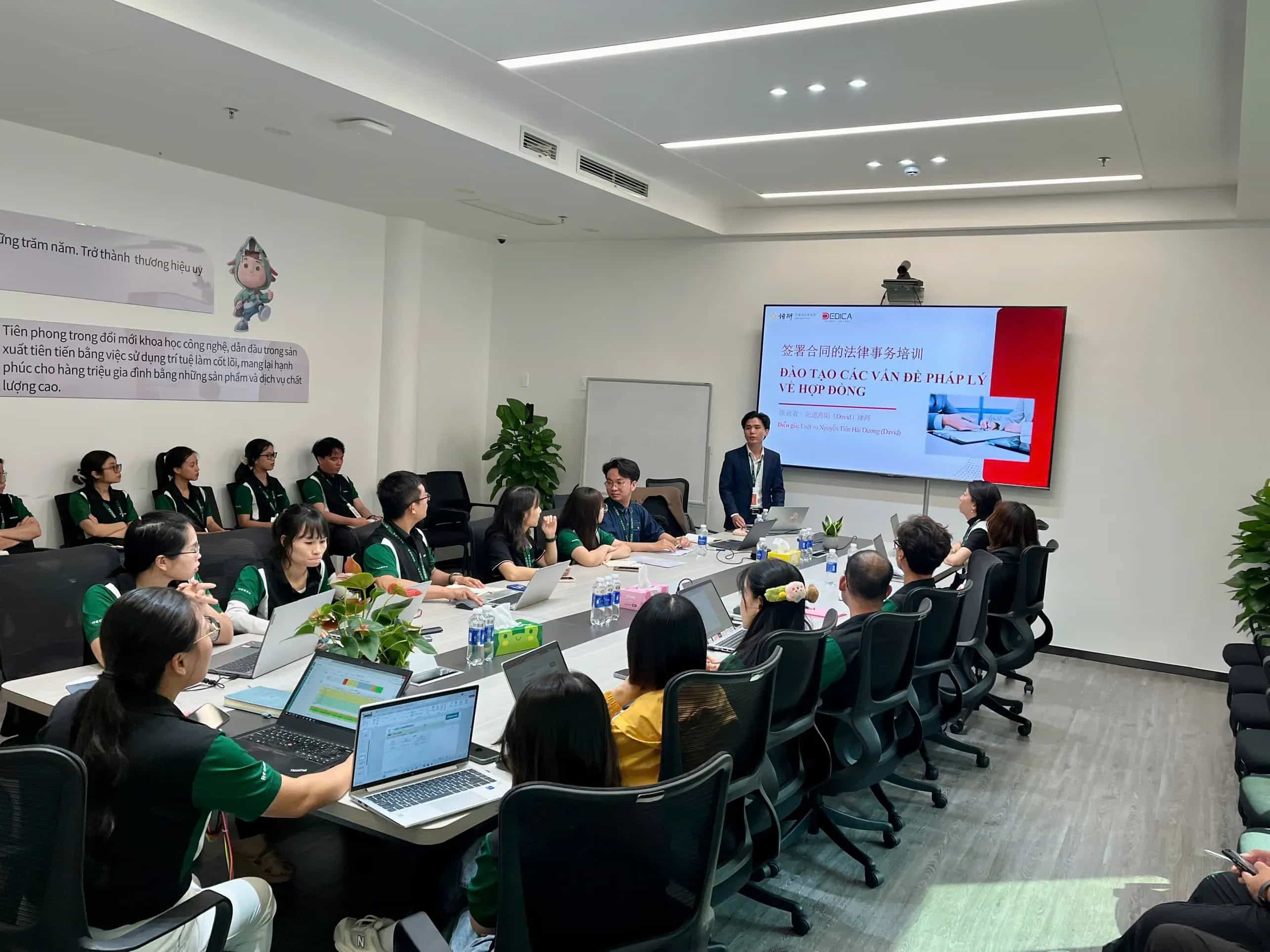최근 DEDICA는 China Hisense Group(공장의 모회사)의 요청으로 REGZA DONG NAI FACTORY에서 계약에 관한 법률 교육 세션을 개최했습니다. Hisense는 중국과 세계 최고의 전자 제품 제조 회사입니다. 2024년에 이 그룹은 법인 REGZA Electronics Company Limited와 함께 베트남에 공장을 개설하는 데 투자했습니다. DEDICA는 REGZA 공장의 정규 법률 컨설턴트로 임명된 것을 영광으로 생각합니다. 교육 세션에서 DEDICA 변호사, 공장 관계자 및 직원은 다음과 같습니다. 계약 양식의 요구 사항과 계약의 중요한 조건에 대해 배웠습니다. 계약과 관련된 법적 위험과 이를 방지하는 방법에 대한 경험을 공유합니다. 계약 문제와 관련된 공장 관계자 및 직원의 질문에 답변합니다.